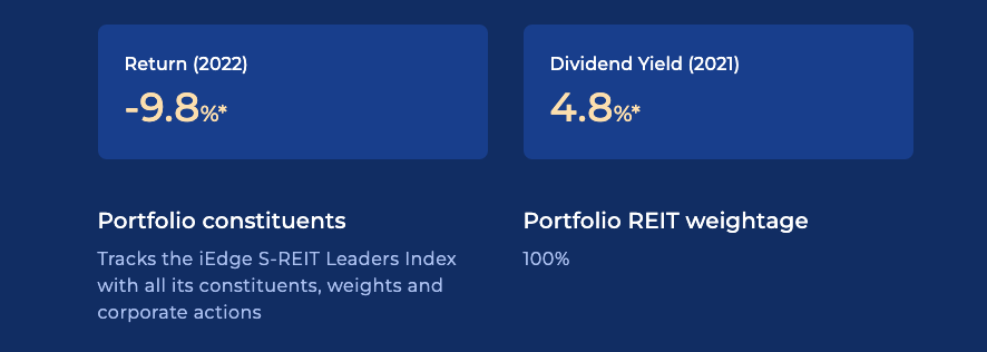Syfe Reit+ tracks the SGX’s iEdge S-REIT Leaders Index by investing in 20 largest Singapore REITs.